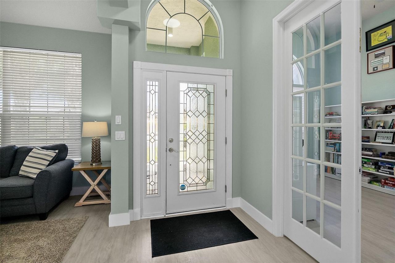 Welcome to this beautifully maintained 4-bedroom, 2-bathroom home offering 2,575 square feet of living space in the highly sought-after Plantation Bay community. Designed with a thoughtful split-bedroom layout, this home provides ultimate privacy and comfort. Step inside to discover an open floor plan, where the spacious kitchen seamlessly flows into the inviting family room and informal dining area. Large windows and french doors bring in an abundance of natural light and offer picturesque views of the sparkling pool and serene backyard. The tranquil outdoor space is perfect for relaxation or entertaining, with the pool area backing up to a peaceful nature preserve, ensuring privacy and a calm, scenic backdrop. Whether you're hosting a gathering or enjoying a quiet evening, this home provides the ideal setting for modern living. New water heater, LVP flooring, kitchen and bathroom cabinets, trim, lighting, quartz countertops, sinks and faucets 2025. New roof, gutters and sprinkler system update 2024. Newer paint, kitchen appliances, screen enclosures and pool heater. HVAC new in 2023. Plantation Bay memberships available which provide access to wellness center, pickleball and tennis as well as golf and clubhouse. 3 car garage with built in storage/workshop, 240 outlet.