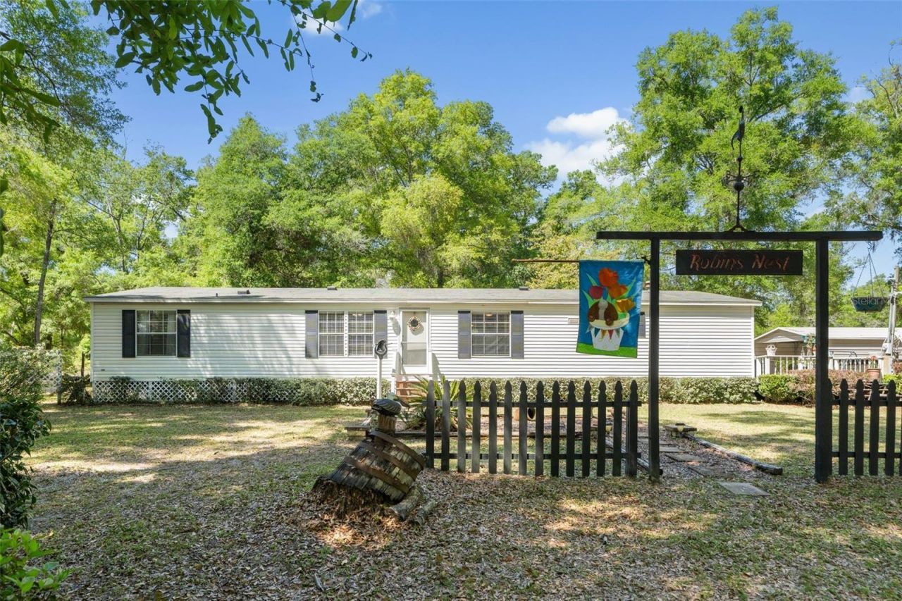 Nearly 7 acres in Gilchrist County with a High Springs address, offering lower property taxes and a peaceful North Florida setting. This 3-bedroom, 2-bath home features two living areas, including a family room with a wood-burning fireplace, along with an eat-in kitchen and separate dining space. Fresh paint and luxury vinyl plank flooring throughout. All bedrooms have walk-in closets, and the split floor plan provides added privacy. The primary suite includes dual vanities and a garden tub. Approximately 3 acres are cleared, with additional wooded acreage for privacy and wildlife. The property includes a small fenced area, two sheds, one with electricity, a two-car carport, a 3-zone irrigation system, and a firepit area-perfect for enjoying evenings outdoors-along with a private well and septic system. Zoned for highly rated Bell schools and conveniently located approximately 3 miles to Poe Springs and Blue Springs, and 6 miles to Ginnie Springs, with easy access to High Springs, Gainesville, and Lake City.