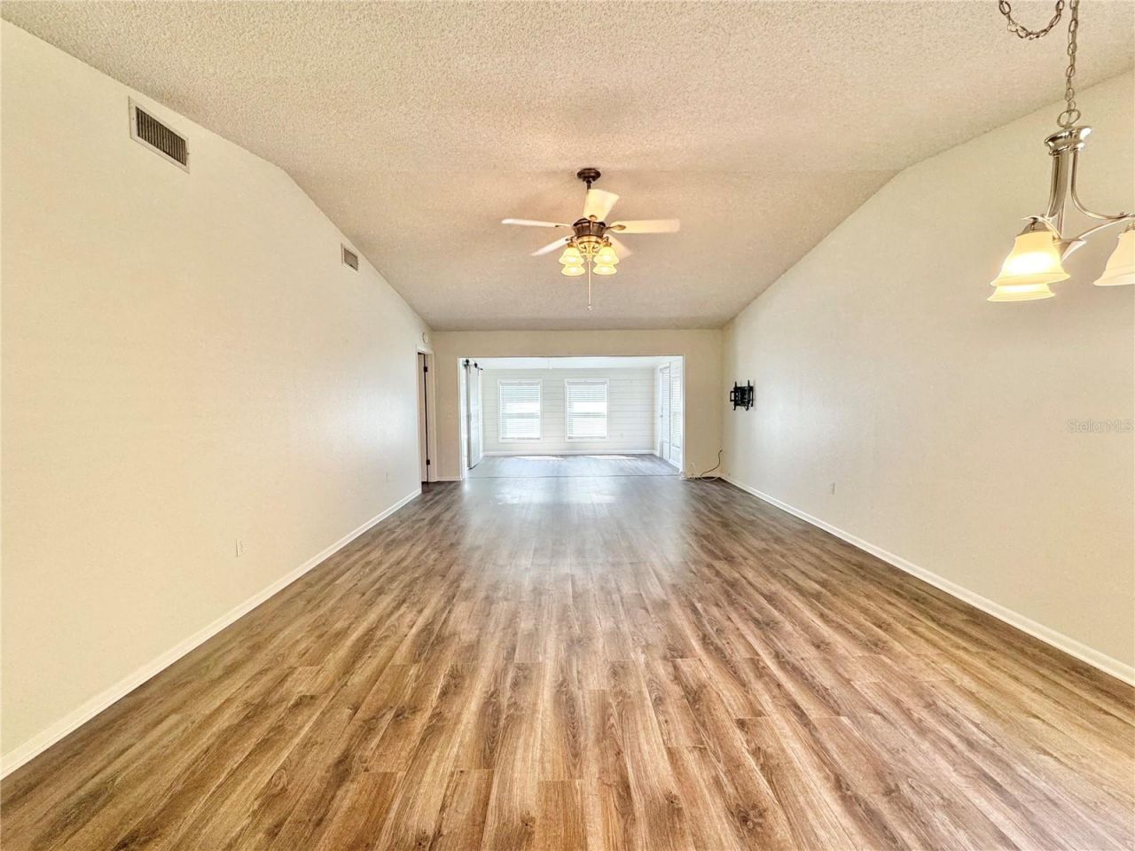 Discover this beautiful 2-bedroom, 2-bath home with an additional flex room, perfect for a home office, den, or guest space, enclosed with a stylish barn door. Located in the desirable lakefront community of Cypress Landing, this home offers a welcoming and open layout with vaulted ceilings and abundant natural light. The kitchen is designed for both function and style, featuring ample cabinetry, generous counter space, and a breakfast bar that flows seamlessly into the dining area. A sliding glass door leads to a cozy 7x15 screened lanai-ideal for relaxing with your morning coffee. The primary suite is a private retreat, complete with an en-suite bathroom including a walk-in shower and 5x5 walk-in closet. The primary bedroom also has elegant French doors giving access to the flex room. Additional highlights include an inside utility room, updated laminate flooring throughout most of the home, and a fenced backyard for added privacy. Residents of Cypress Landing enjoy fantastic community amenities, including a clubhouse with social events, a heated pool, tennis courts, and a private boat ramp with lake access for fishing, boating, and watersports on Lake Dexter. Conveniently located just minutes from Legoland, shopping, and dining, this move-in-ready home offers the perfect balance of comfort and convenience.